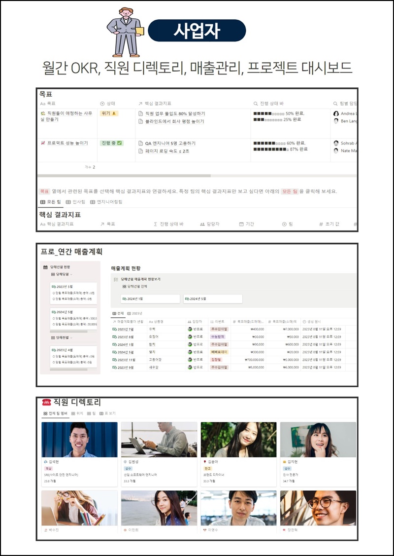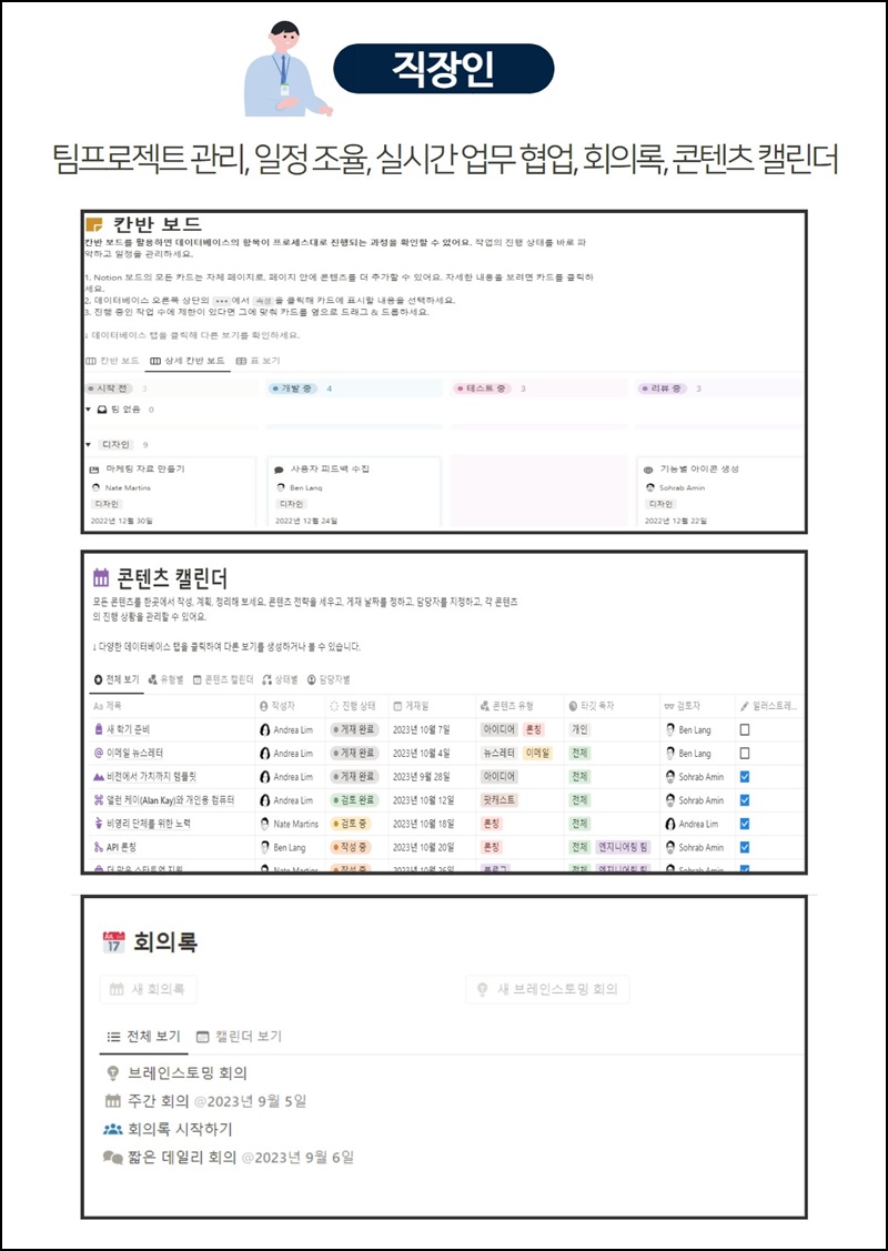 팀원, 부서별로 업무 공유, 협업이 필요한 분