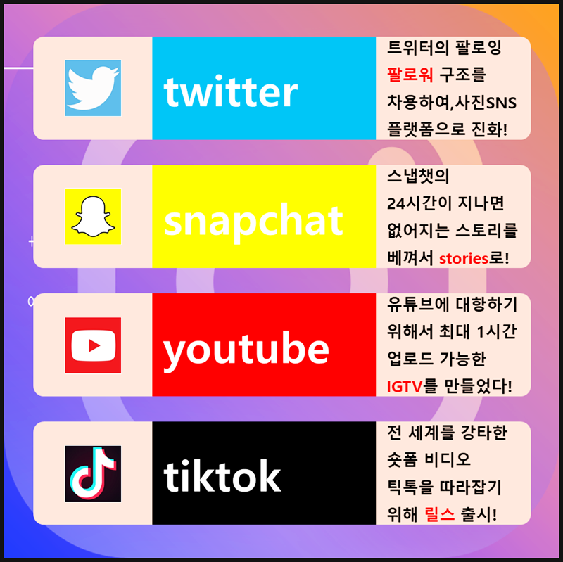 인스타그램은 트위터, 스냅챗, 유튜브, 틱톡을