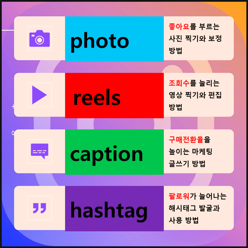 적절한 썸네일, 캡션, 해시태그가 어우려져야